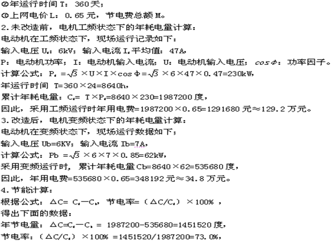 2.壓縮機(jī)出入口壓力差降低了很多。以前壓差5公斤,設(shè)備嘯叫嚴(yán)重,能達(dá)到120分貝;改變頻后壓差為0.8公斤,噪音僅為75分貝左右。從而減輕了起動(dòng)機(jī)械轉(zhuǎn)矩對(duì)電機(jī)機(jī)械損傷,降低了噪音,有效的延長了電機(jī)的使用壽命,相應(yīng)地延長了許多零部件的壽命;同時(shí)極大的減輕了對(duì)管道的沖擊,有效延長了管道的檢修周期,減少了檢修維護(hù)開支,節(jié)約大量維護(hù)費(fèi)用。