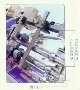 支承管座固定在羅拉座上之前,要用定距規(guī)調(diào)整支撐管座的安裝位置。支承管座的中心到前羅拉中心距離為210毫米,支承管一旦固定到正確位置后,就可以拆去定距規(guī)了。見圖(五)