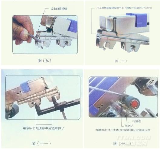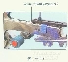 將組裝好的支承管組件裝到支承管座上,用定距規(見上頁圖五)調整好支承管與下羅拉的相對位置,經驗查無誤后,用支承管座上蓋及螺釘將支承管固緊。