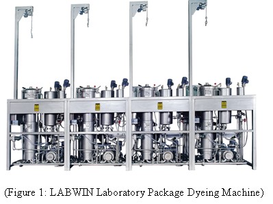 The LABWIN Laboratory Package Dyeing Machine (figure 1) is an easy to handle and very flexible tool for every package dyeing plant. It has the same functional features as production machine. Its liquor ratio and flow rate are consistent with the bulk production package dyeing machine. The process technique developed on the LABWIN can be applied with very little adjustment to bulk production and the improvements for the production process can be simulated on the machine before bulk production. The LABWIN machine has following features, which make it a superior laboratory equipment in the market: