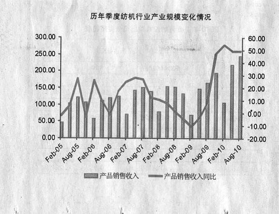 2010年1~8月,紡機行業實現產品銷售收入569.90億元,同比增長 50.16%;資產總計為727.16億元,同比增長 25.77%;企業數為1058戶;從業人員年均人數為14.50萬人,同比增長 4.05%。銷售收入以及資產總額的不斷增加,進一步佐證了紡機行業制作技巧程度的進步。