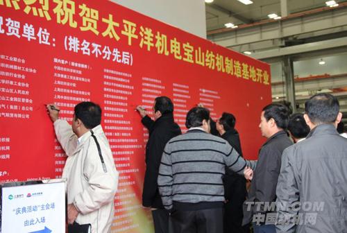TTMN訊 2012年11月30日上午,太平洋機電寶山紡機制造基地開業(yè)慶典在上海寶山區(qū)隆重舉行,受到各方面領導及代表的祝賀,機構領帶、行業(yè)媒體及國內外近150多家用戶代表,以及其他領導和嘉賓共200余人出席。