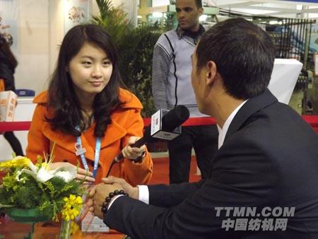 (圖為日發紡織機械的潘經理在接受中國紡機網記者采訪 中國紡機網 TTMN.COM攝)
