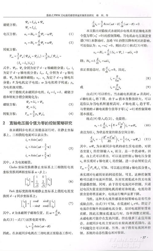 隱極式PMSM無電流傳感器調速控制系統研究