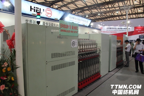 而另一款KV2008B倍捻環錠復合捻線機在展會期間打出了“四大優勢”的響亮口號,更是吸引了不少客商駐足參觀。據現場工作人員介紹,該產品是美國線業(A&E)生產中粗支長絲縫紉線的重要環節。和同類產品相比,此機有少用工、高產量、高質量和高性能四大優勢。優質的產品加上別具匠心的宣傳設計讓新合力紡機展臺人流如織。