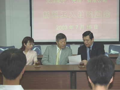 2003年7月16日上午,光洋電子、研光電子為新加入公司的15位新員工舉行了一次歡迎儀式,副社長、董事長、兩家公司的總經理等人到會指導。