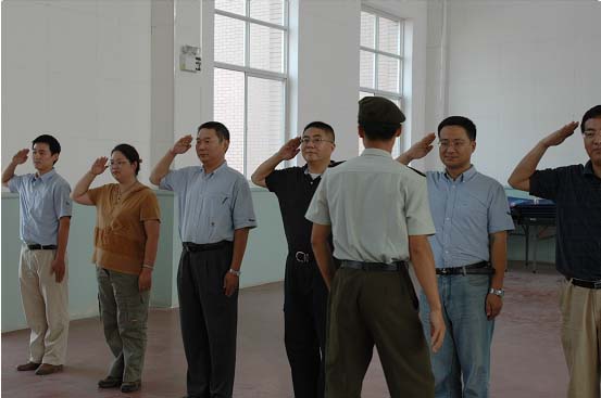 為了通過軍事化訓練提高公司管理人員的吃苦耐勞和團隊協作精神,公司于2007年9月14日下午組織干部們到駐無錫某部隊參觀并進行了軍事訓練。大家通過參觀、訓練親身體驗了軍營生活,體會到部隊的嚴謹作風及團隊協作和奉獻精神。大家一致認為回去要好好總結,并將之與我們日常的工作緊密聯系起來,發揚軍事作風,為公司的發展多作貢獻。 (以下是軍事訓練的時的照片)