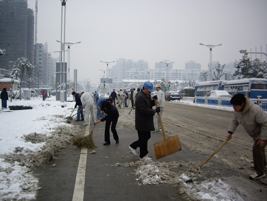 2月1日又下了一夜的大雪。2日一清早,公司領導就帶領廣大員工對蠡溪路路面的積雪進行了清掃,清掃從公司門前開始,一直清掃到北至滴翠路,南至太湖大道。公司廣大干部員工希望通過這項活動,為無錫市的和諧家園建設貢獻一份力量。