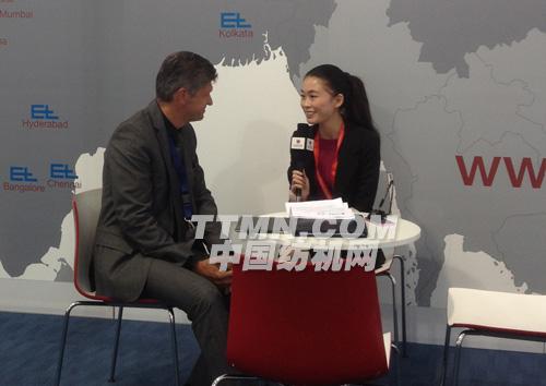 劉曉玲:觀眾朋友們大家好,我是TTMN記者劉曉玲,這里是2014中國國際紡織機(jī)械展覽會(huì)暨ITMA亞洲展覽會(huì)展會(huì)現(xiàn)場,現(xiàn)在我們走進(jìn)的是萊默爾機(jī)電設(shè)備有限公司,非常榮幸有請(qǐng)到該公司的集團(tuán)執(zhí)行長默克先生接受我們的采訪。