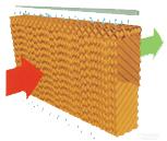 天順濕簾降溫系統(tǒng)的降溫過(guò)程是在其核心-“天順”紙墊內(nèi)完成的。在波紋狀的纖維紙表面有層薄薄的水膜,當(dāng)室外干熱空氣被風(fēng)機(jī)抽吸穿過(guò)紙墊時(shí),水膜上的水會(huì)吸收空氣中的熱量進(jìn)而蒸發(fā)成水蒸汽,這樣經(jīng)過(guò)處理后的涼爽濕潤(rùn)的空氣就進(jìn)入室內(nèi)了。這自然的過(guò)程猶如風(fēng)吹過(guò)水面一樣。