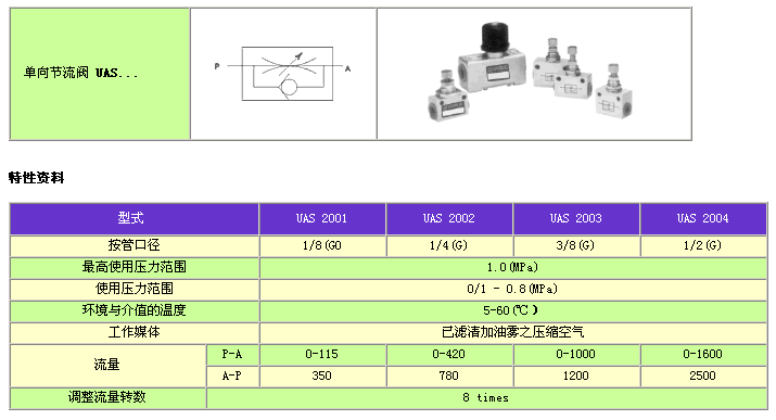 UAS 單向節流閥