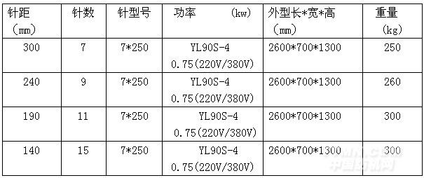 5針—24針,針距可調最小1公分,最長7分公。