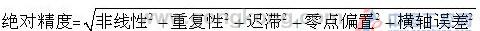 (2)   試驗方法:根據上面的測試結果;對傳感器的非線性、重復性、遲滯、零點偏置以及橫軸誤差的平方根值即為綜合絕對精度