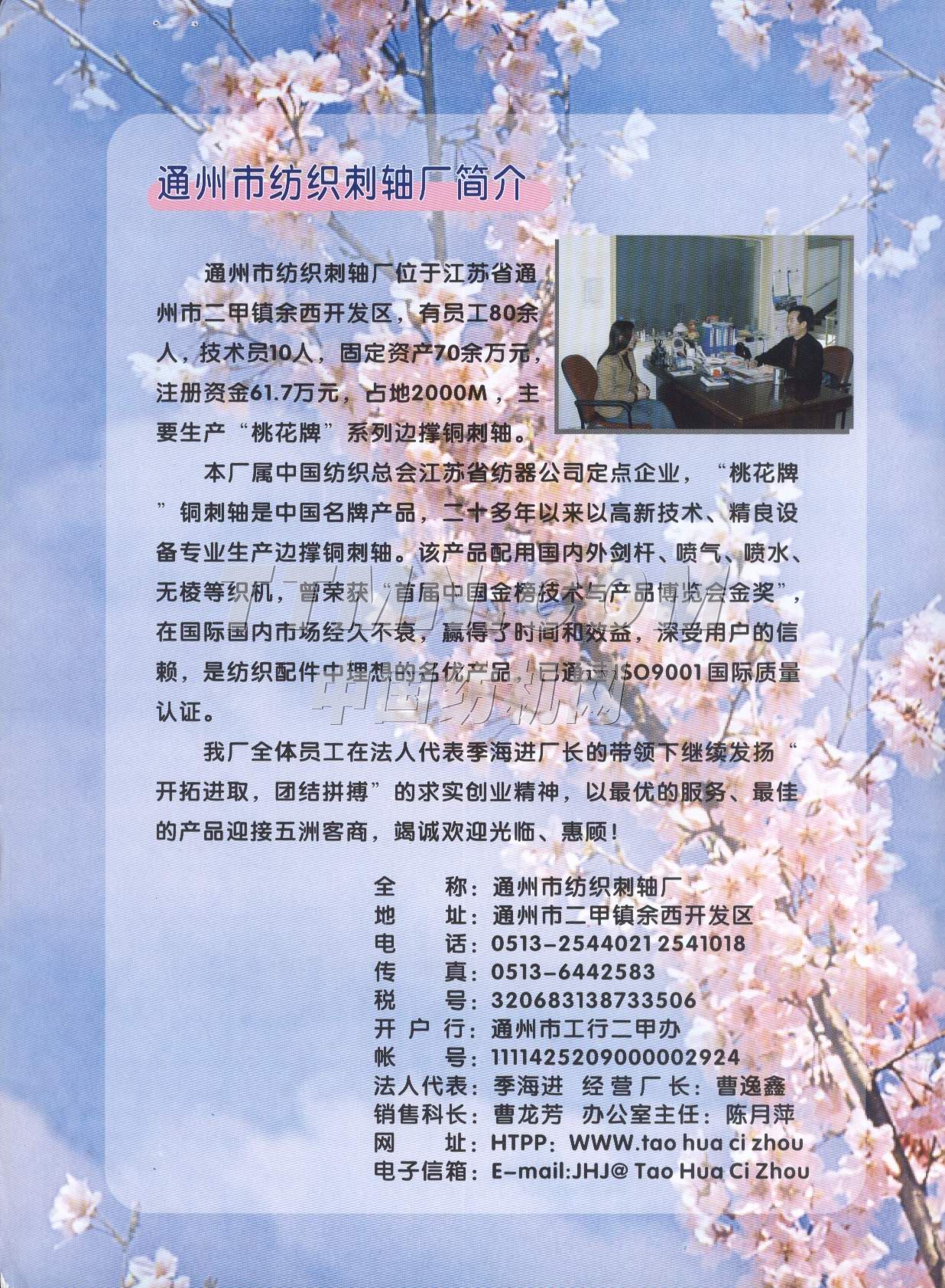 - 地 址:江蘇省通州市二甲鎮余西開發區
