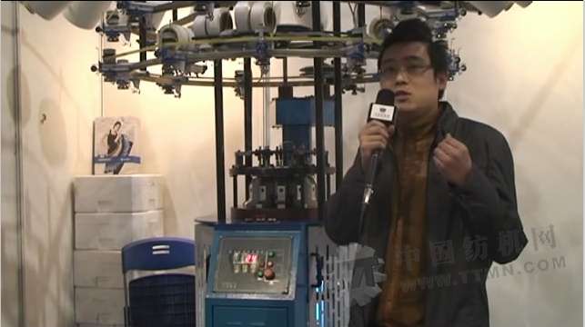 張經(jīng)理:我們是寧波圣博小圓機(jī)紡織機(jī)械有限公司,引進(jìn)了三環(huán)集團(tuán)為我們投資的,我們是在2012年成立的廠家,我們這臺(tái)機(jī)器各方面是不錯(cuò)的,因?yàn)橐M(jìn)了三環(huán)集團(tuán)的技術(shù)力量,做得也比較細(xì)膩,也比較全面,主要是針對(duì)現(xiàn)在時(shí)下比較流行的打底褲。