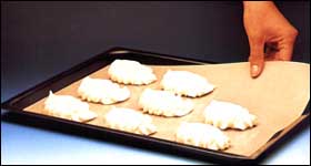 特點: 1.采用玻璃纖維布涂覆優質特氟龍,抗粘性優異,可以輕松去除表面的油漬,污點等,可反復使用。 2 防止油漬物在烘烤過程中溢出流到烤箱底部堆積。尺寸可根據烤箱隨意裁切。 3 耐溫范圍高,常規耐溫-70-260℃,最高可達380℃ 4.可安全在洗碗機中使用,無毒,可安全接觸食物,并有防腐功能。 應用: 1.用于食品加熱: 1)用剪刀將烤盤片裁成所需尺寸和形狀. 2)放在鍋,盤或其它容器上面 3)在烤盤片上放上食品. 4)食品烤熟后,等冷卻取出烤盤片,用洗滌水清洗。 5)烤盤片可反復使用 2.用作烤箱墊片: 電烤箱–放在電烤箱底部或最下面的烤架上. 蒸汽烘箱—放在最下面的烘架上,不能直接放于底部。 作為預處理表面,應用其抗粘特點,可用于加工面團的工作面臺 規格: 1 9008AJ, 0.08mm棕色烤盤片 2 9013AJ, 0.13mm棕色烤盤片 3 9008Y, 0.08mm高等級黑色銀粉烤盤片 4 9013Y, 0.13mm高等級黑色銀粉烤盤片 5網格烤盤片如1X1毫米網格,2X2, 4X4, 10X10等