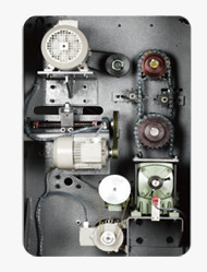 此傳動箱包含所有的傳動電機,減速箱和傳動部件。結構緊湊,經久耐用,主要部件為西門子電機,進口傳動皮帶和進口軸承。
