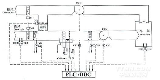 紡織空調自動控制系統原理圖: