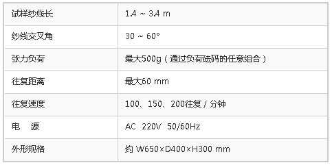 本機通過對紗線的交叉角,往復距離,往復速度,負荷砝碼的調節,可以進行各種各樣條件的試驗。