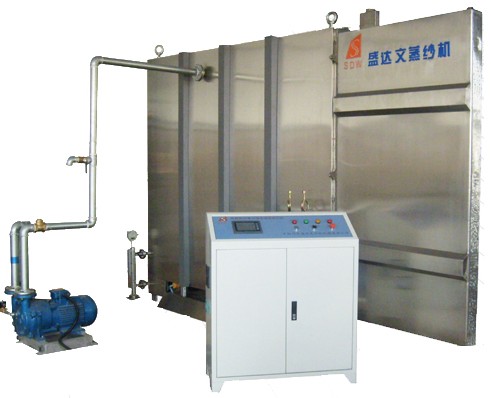 LT-800蒸紗機(jī)采用間接汽蒸方式,通過抽真空將蒸紗機(jī)內(nèi)的干燥空氣抽出,同時(shí)降低水的沸點(diǎn),使蒸紗機(jī)水槽內(nèi)的水最低可50℃沸騰產(chǎn)生低溫飽和蒸汽,從低溫到高溫對(duì)紗線或織物進(jìn)行均勻、精確柔和的汽蒸處理。