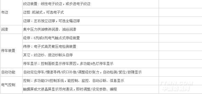 ★ 自動控制功能:過載保護、斷經(jīng)自停、斷緯自停、織口自動補償、經(jīng)紗張力自動調(diào)整、自動控制織邊絞邊時間、空打緯(緯數(shù)數(shù)字控制)、網(wǎng)絡(luò)監(jiān)控、自動檢測/復(fù)位、自動故障診斷、自動顯示等。