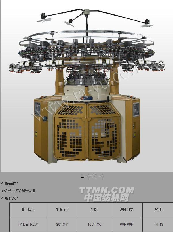 您所在的位置:紡機網(wǎng) > 產(chǎn)品庫 > 羅紋電子式移圈針織機TY-DETRJ2W
