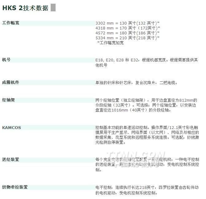 就生產的產品而言,HKS 2具有最大限度的靈活性:由于特殊的成圈運動和特別的成圈機件,這種機型還非常適合十分低的線圈密度和粗機號。另外,相當多的墊紗組織變化將HKS 2變成產品有著最多功能性的兩梳高性能特里科經編機。