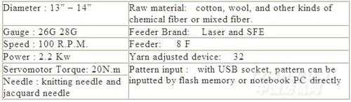 無縫內衣機技術參數: