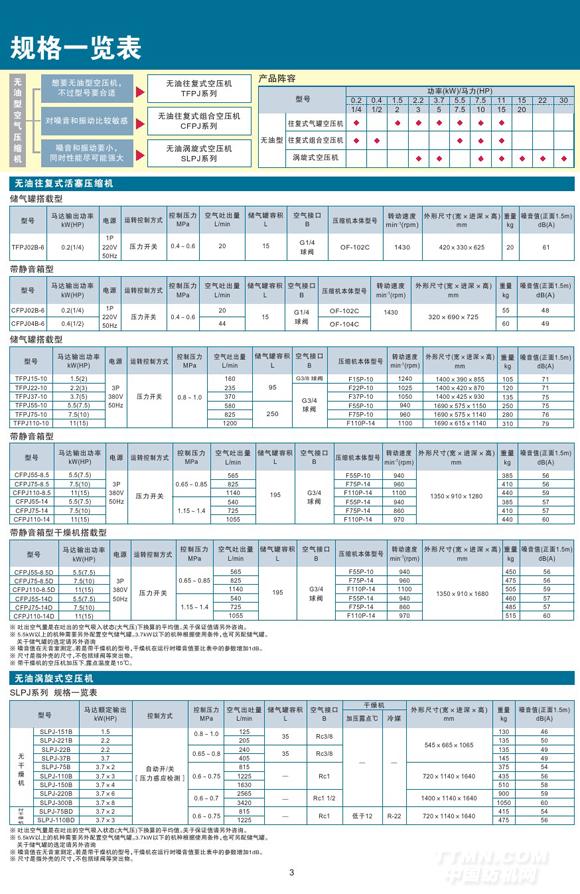 無油活塞式空氣壓縮機(jī)帶靜音箱型干燥機(jī)搭載型詳細(xì)參數(shù)
