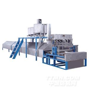 本機器是目前國內先進并且產量最大的絞紗段染機。可對晴綸、毛晴、羊毛、混紡纖維的不同支數的絞紗進行分段染色,并且自動連續進行固色處理,分段染色的毛線、絞紗、花式線可以機織、針織或手工編織出具有“自由花型”的織物,深受消費者的喜愛。