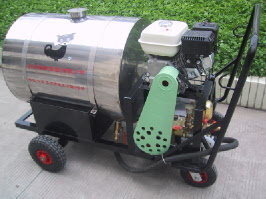 點擊看大圖     3WHC280推車式噴霧機   型號:   3WHC-280   類別:   噴霧機      ·產品描述     3WHC-280型推車式機動消毒專用噴霧機               配置:280L 1.5mm304不銹鋼水箱,HONDAGX160或YAMAHA MZ175 5.5HP-6.5HP輕型OHV汽油機,E新式高壓泵,輕便卷管架,4輪充氣輪胎,雙轉向輪穩定靈活,2米多頭噴槍或寬幅遠程噴槍,適合各種高度作業。在2004年初的禽流感及口蹄疫防治中,得到了廣泛的應用。   試驗效果