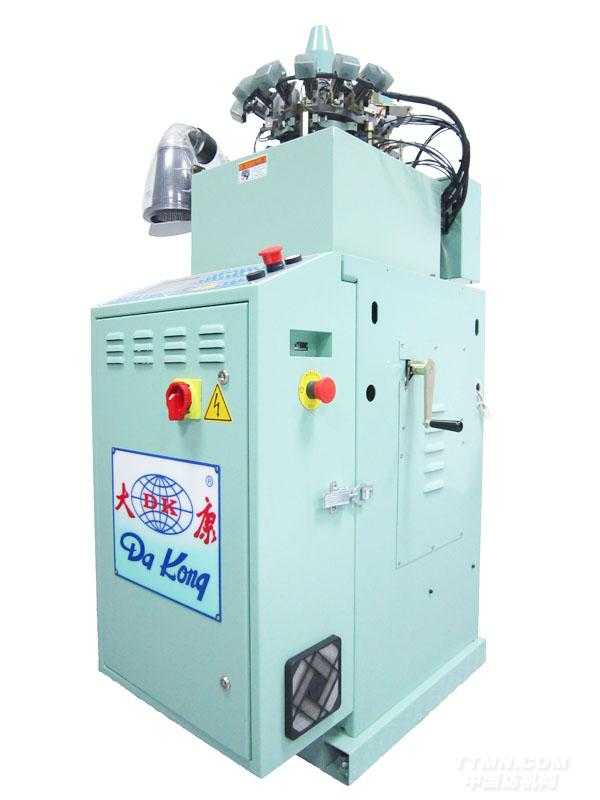 任意毛圈機 DK-B318J,主進紗系統配8個梭子,6個輔助,添紗提花進紗配 16個梭子。每1橫列可多達6個提花色加1個底色。選針器使用日本WAC高速電子選針器。襪機帶有自動測試、故障感應和自我保護系統。自主開發了先進的花型設計軟件,可用于三維立體編織。
