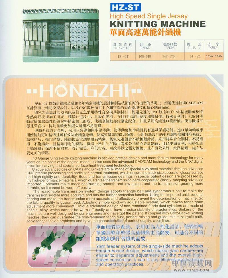 HZ-ST單面高速萬能針織機 -- 宏智(泉州)機械有限公司