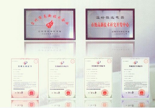 我公司于2007年被評為“臺州市高新技術企業”,授予并設立“市級高新技術研發中心”,2008年又榮獲“浙江省科技型企業”。
