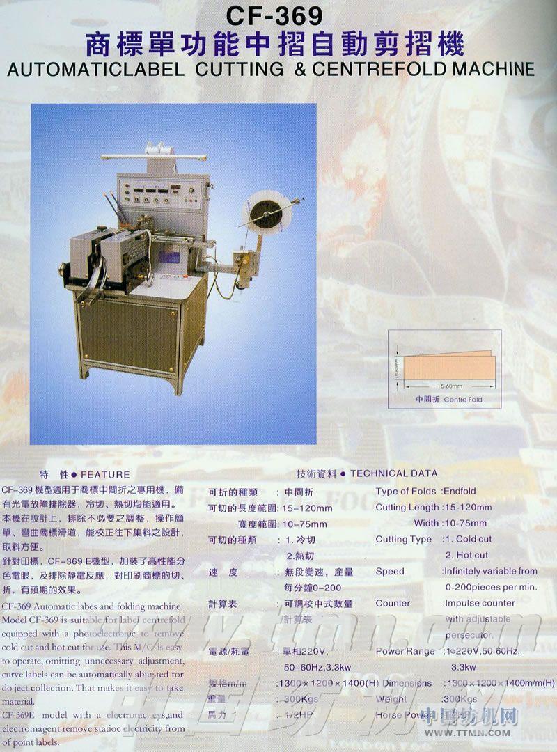CF-369商標單功能中摺自動剪摺機
