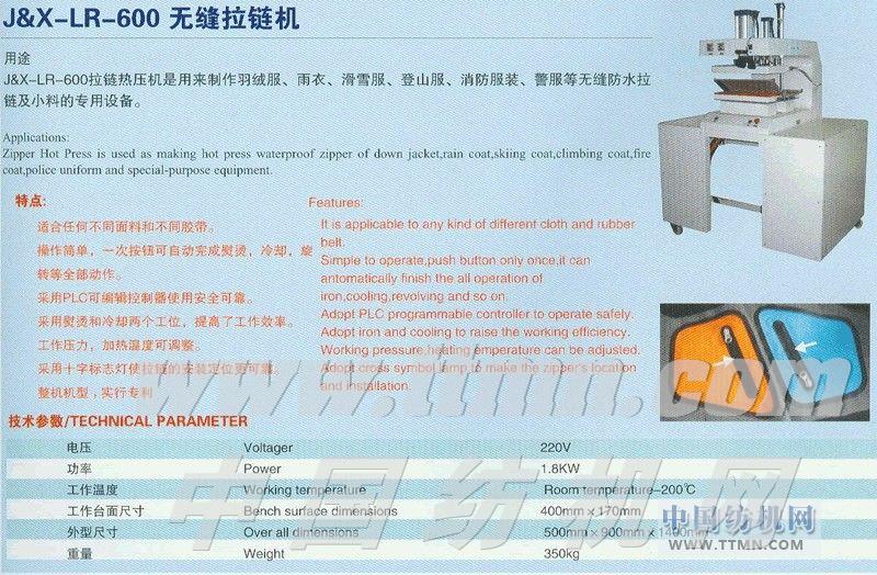 J&X-LR-600無縫拉鏈機 -- 上海精先電子機械有限公司