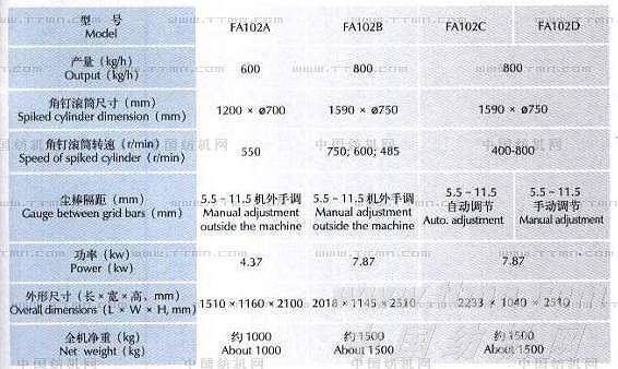 FA102A FA102B FA102C FA102D單軸流開棉機