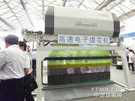 2012年國際紡機展上公司展出2臺ALS16系列電子提花裝置,1臺為 ALS5120電子提花機,該機外形美觀,開口速度達:600緯/min,前開口:50~90mm,后開口:75~120mm,可調(diào)節(jié),針數(shù) 5120針。