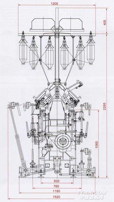 TH578系列緊密紡細紗機橫剖面圖