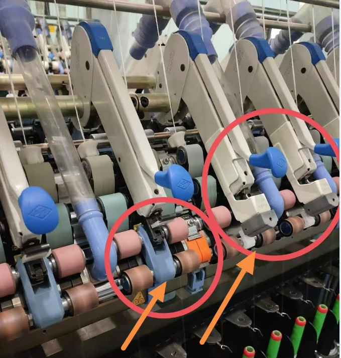 下銷的位置要擺放準(zhǔn)確,不能壓在前羅拉軸承外殼上,否則容易造成擠下皮圈的情況,甚至拉斷下皮圈。