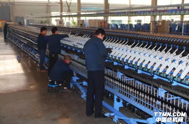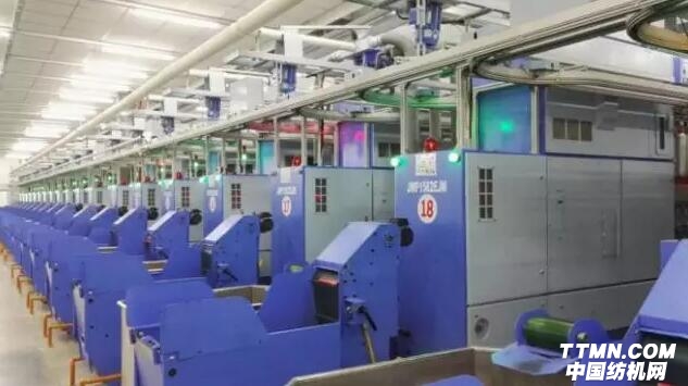 ▲ JWF1562EJM型全電子數(shù)字化細紗機在江蘇大生高效運行