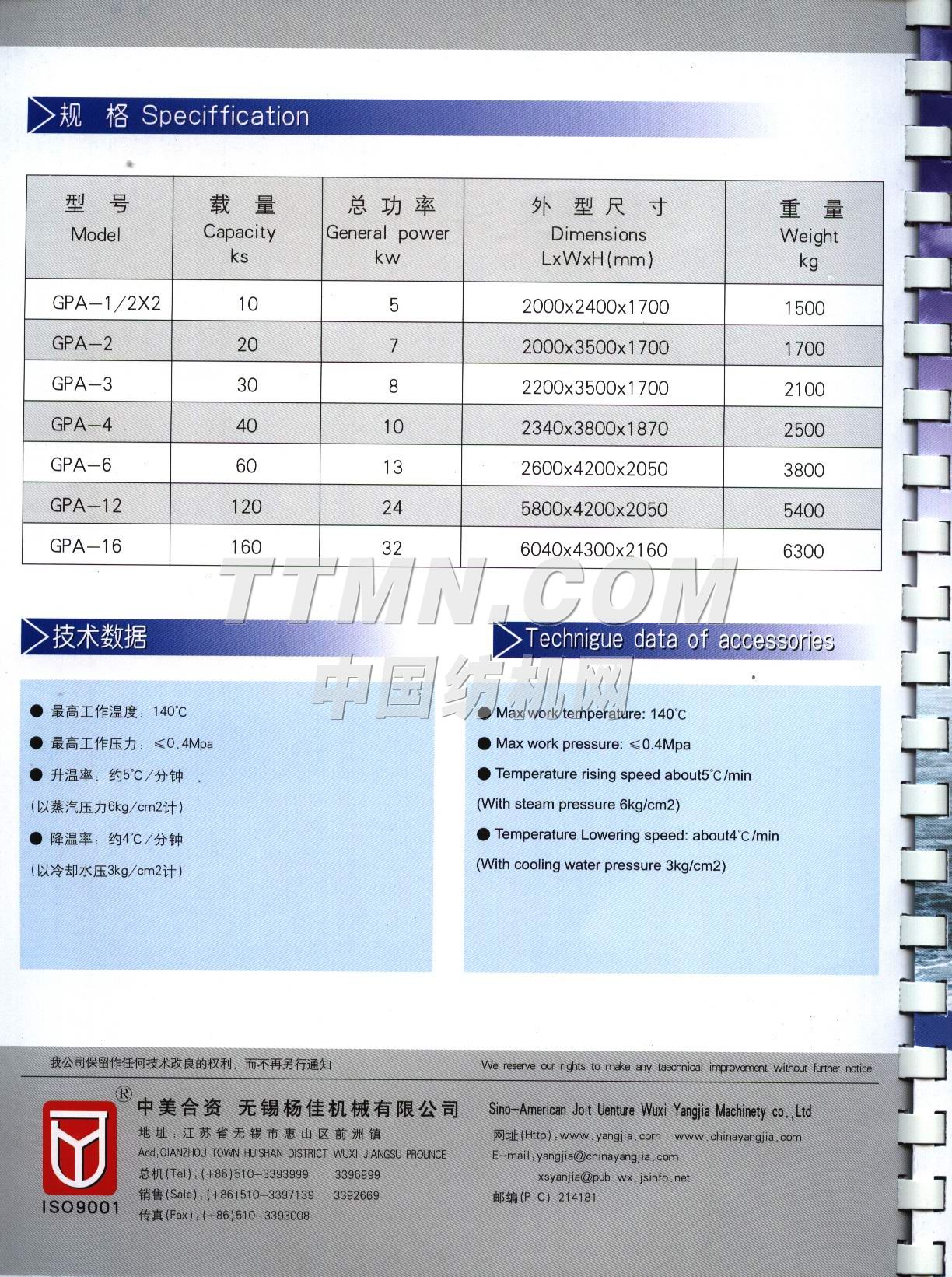 您所在的位置:紡機網(wǎng) > 紡織機械樣本庫 > 無錫楊佳機械有限公司