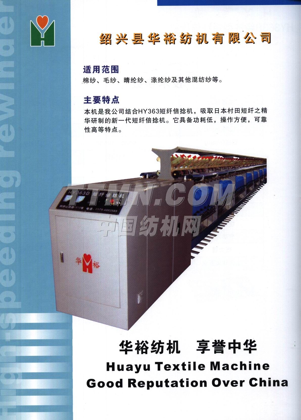 您所在的位置:紡機網(wǎng) > 紡織機械樣本庫 > 紹興縣華裕紡機有限公司