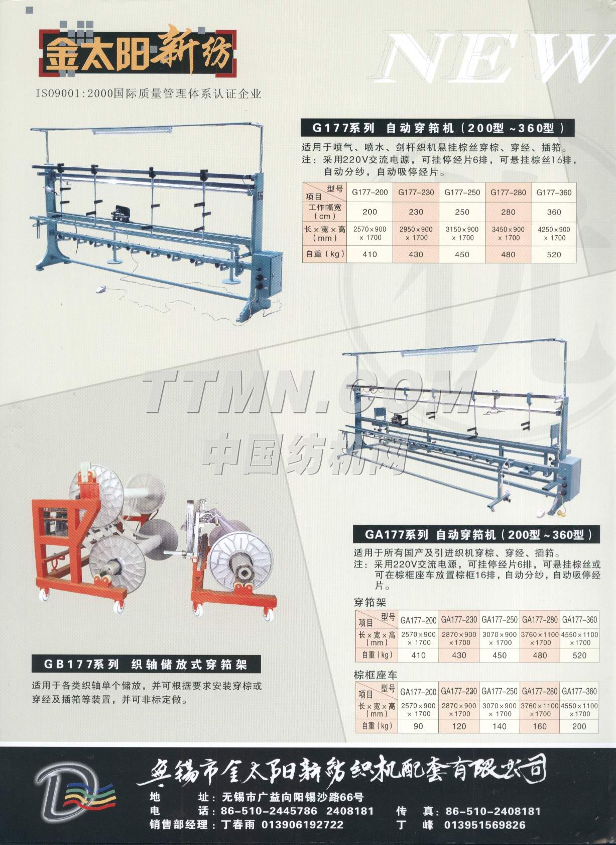 您所在的位置:紡機(jī)網(wǎng) > 紡織機(jī)械樣本庫 > 無錫市金太陽新紡織機(jī)配套有限公司
