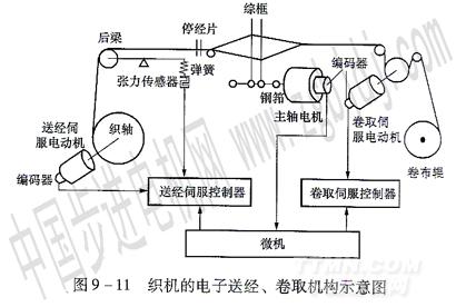 為保證生產連續進行,必須不斷地送出經紗與緯紗,織成織物。而形成織物后,又應該及時將織物引離織口,并卷在布輥上。上面所說的完成經紗放出和織物卷取的機構,分別叫做送經機構和卷取機構。劍桿織機屬于高檔先進的織機。它采用交流伺服電動機構成的電子送經卷取機構,具有高速度、高質量、高可靠性、控制靈活方便的優點。