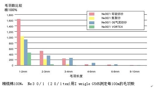 纖維時,對棉纖維特性有較高的要求,需要高等級的棉花,纖維長度要長,短纖維含量要少。棉纖維長度較短,短絨含量高時將導致紡紗生產中纖維散失明顯,織物耐磨性差。