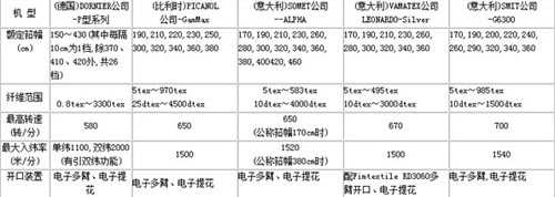 表1:幾種主要進口劍桿織機的性能對比表