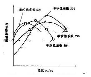 圖8—3—2為4種不同捻系數的單紗在不同捻比配合時的股線強力(斷裂長度)變化情況,其特點為: