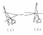 管道片結(jié)構(gòu)與引緯過程如圖2-18所示。管道片有多種形狀與結(jié)構(gòu),如圖2-18(1)所示為脫絲槽封閉式管道片,引緯時,彈簧1將管道片的脫絲槽關(guān)閉,以防止射流擴(kuò)散;如圖2-18(2)所示為脫絲槽開放式管道片,管道片上方敞開著一條脫絲槽。