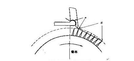 從給棉過程分析可知,錫林梳理時(shí)鉗口外的須叢長度為L1 或L1ˊ。而鉗口咬合線外未被錫林梳理的死隙處的纖維未受到梳理,如圖4-4-8所示。